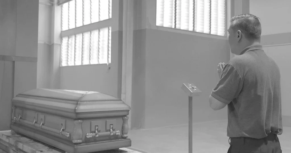 After the funeral rites conclude and the family completes their final farewell, the coffin is placed on the trolley and slowly pushed toward the ceremonial gate. As the gate closes and before the coffin enters the cremation chamber, I stand quietly beside it and say softly: