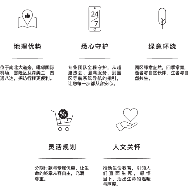 明昱陵静立于自然绿境之中,明昱陵择址于东北向西 / 西南之位,寄托着归静与圆满的哲思,与佛家“向光而行”之愿景相契合。